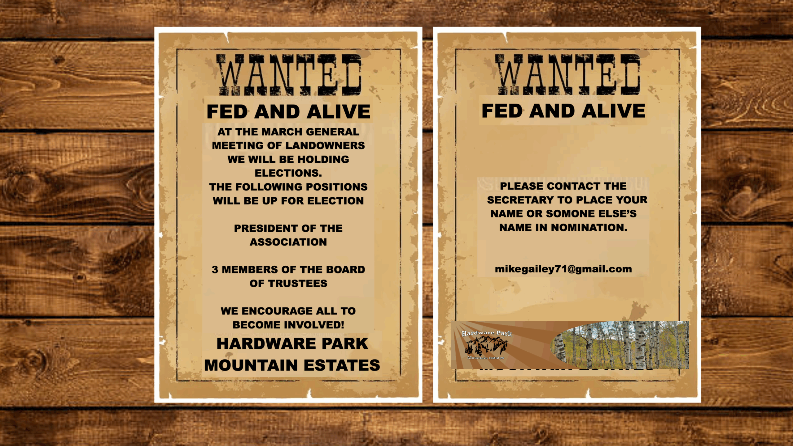Please be aware of the need for nominees for President and Board Members as we will need to elect leadership at the March General Meeting.